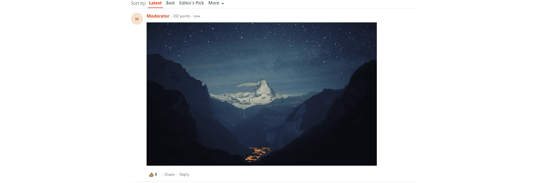 Images from comments display on the Dashboard, modal’s windows and user’s profiles pages.