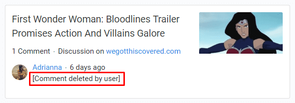 Deleted comments are displayed like this on the website: