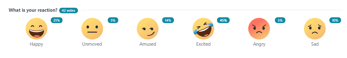 <div id="vuukle-emote" />emotes: { enabled: true, //Enables Emote widget on the page hideRecommendedArticles: false, //Hides Article recommendations on Emote selection size: