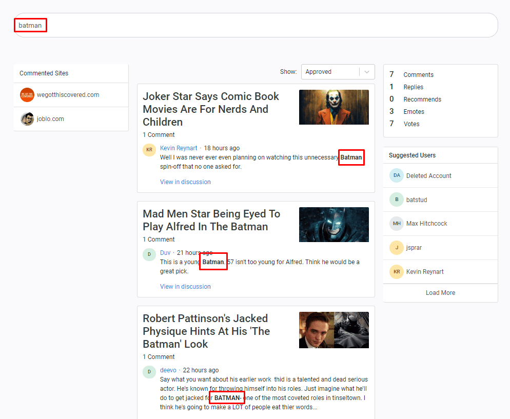 Search results will display comments that match the keyword you’ve entered across all websites with a Vuukle comment widget.