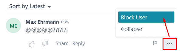 When you block a user, all comments, replies, or other actions from the user will be hidden from you. Comments from the user will be displayed as the image below.