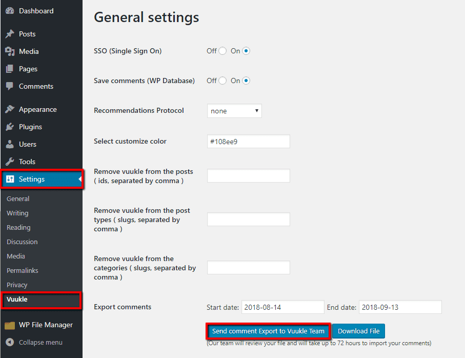 - Click on the ‘Send comment Export to Vuukle Team’ button and within 48 hours we will import your comments to the Vuukle .