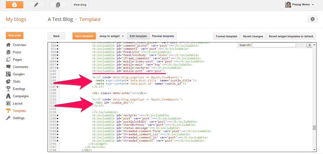 </b:if>Repeat the last 2 steps for the <b:includable id='mobile-post' var='post'> section. This is needed to make sure that Vuukle works on the Mobile version of your blog as well.