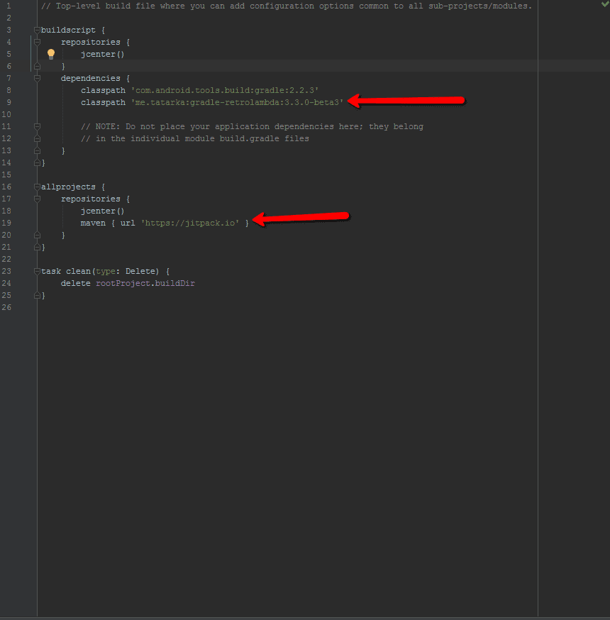 lambdabuildscript {dependencies {classpath 'me.tatarka:gradle-retrolambda:3.3.0-beta3'}}