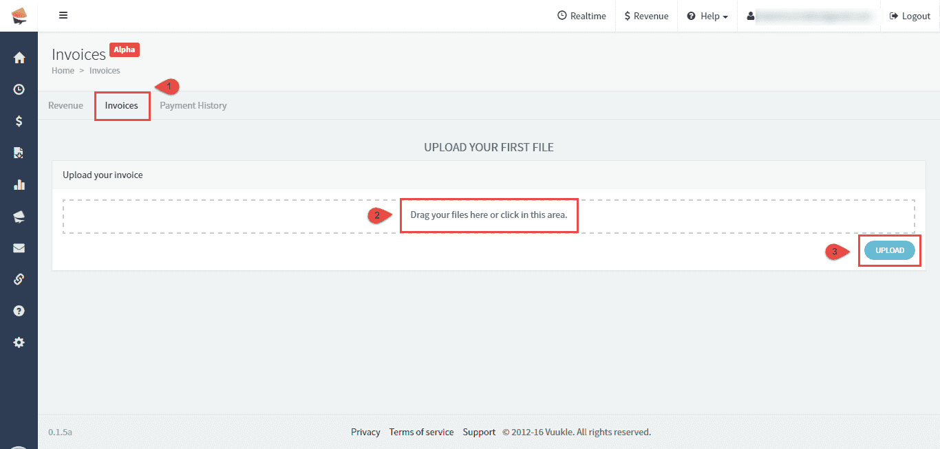 To upload and manage invoices, go to home page of your Vuukle account, choose site, and click on Revenue in submenu.