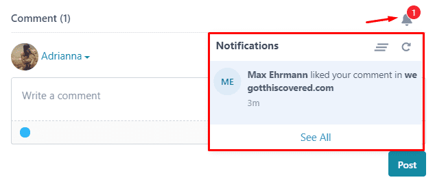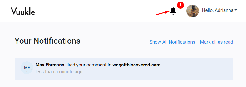 You can view all your notifications in your Vuukle account or through the comment widget.