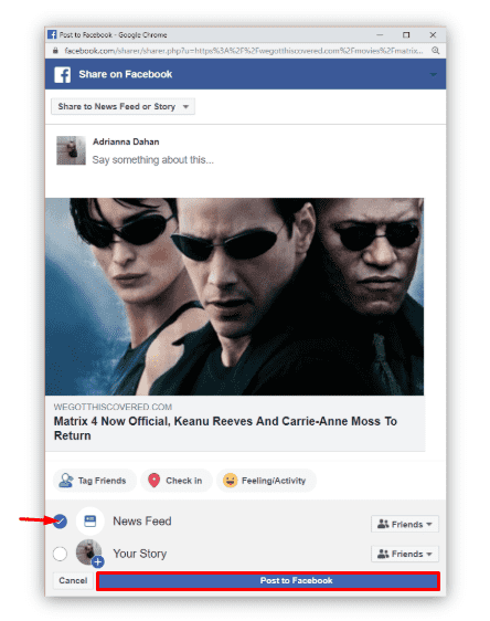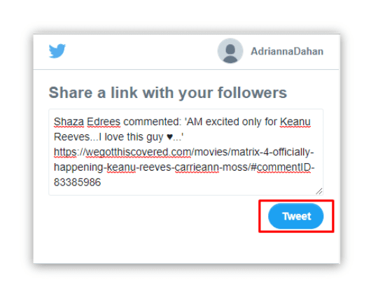 When someone clicks on the tweet, the website loads directly to the comment you shared